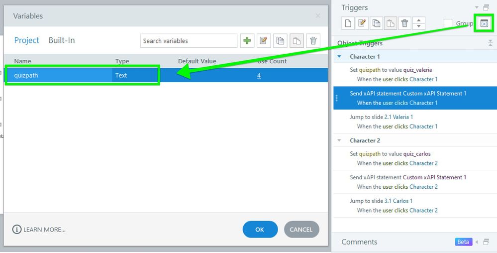 Wow! It looks a bit complex. So, @Eric, I have 4 avatars with separate pathways and quizzes. Could you confirm that using this method, I can somehow tell the invisible result slide it mentions in your link which variable to choose (based on the avatar) and report it to the LMS along with the pass score?