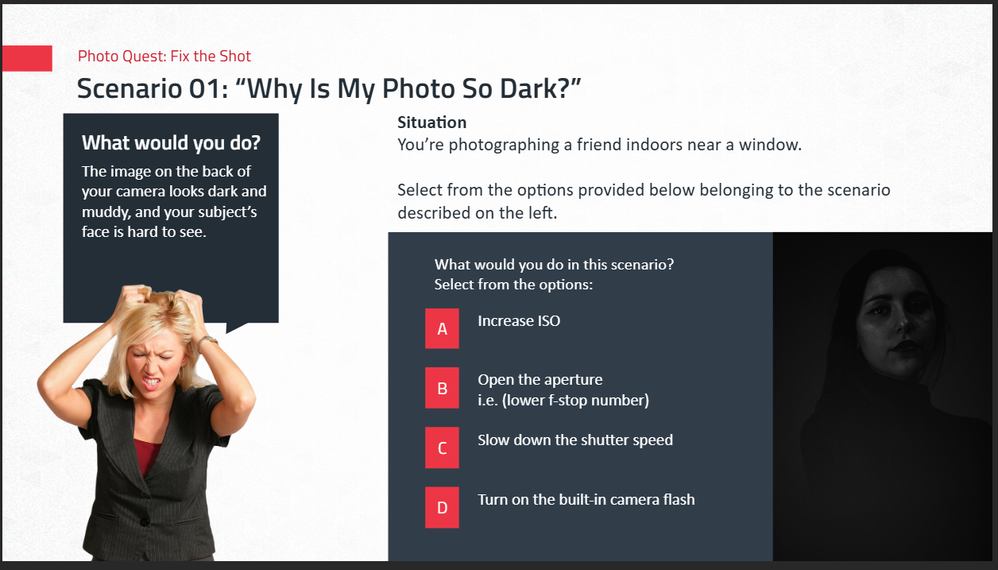 Branching Scenario in Storyline 360: (You can only select one option, but options partially correct)