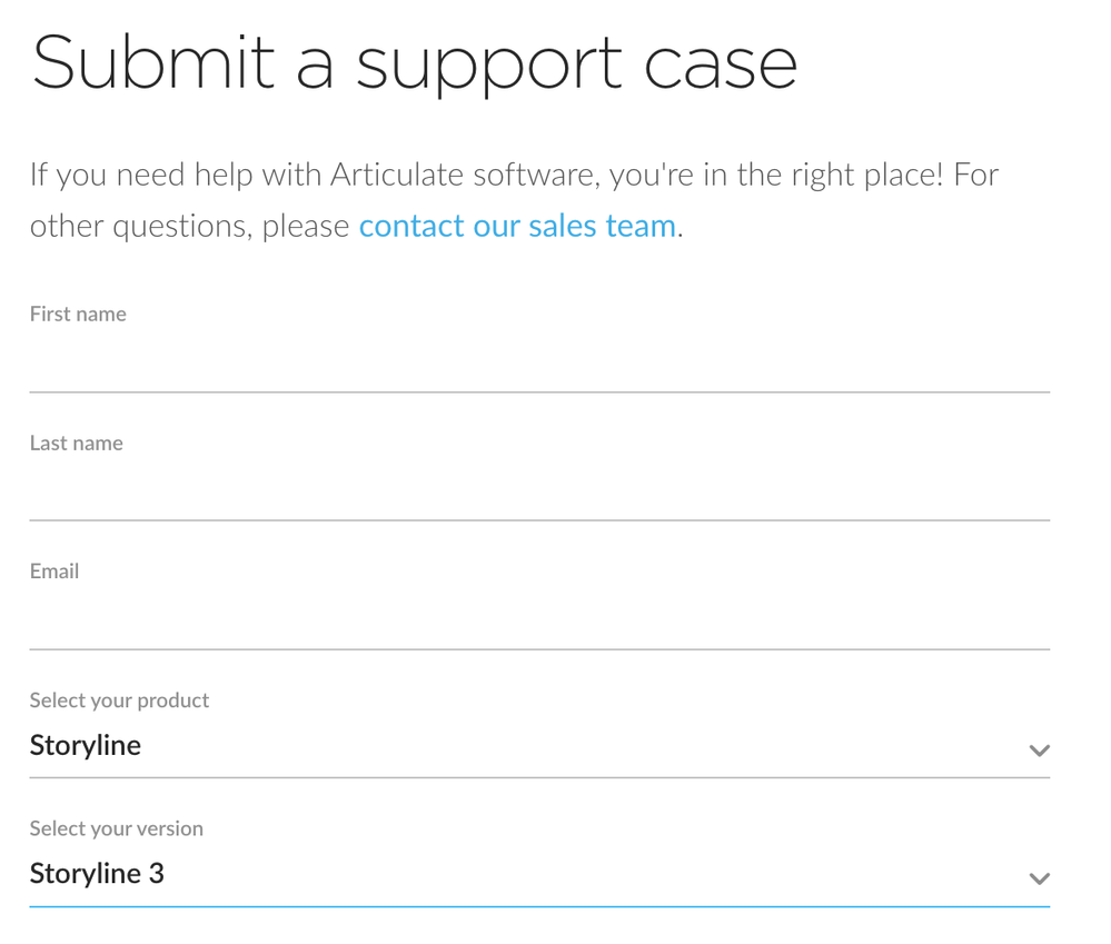 Since you have Articulate 360, you will see those products. Feel free to log out or use an incognito browser if you'd like to submit a support case for Storyline 3.