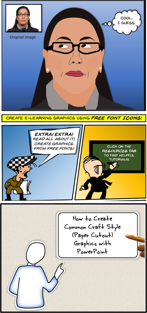 Create Common Craft Style Characters with PowerPoint shapes: https://tracycarroll.net/tutorial-create-common-craft-style-characters-with-powerpoint-shapes/