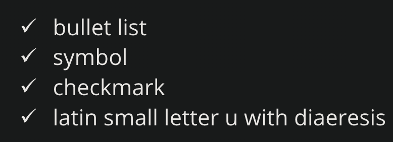 When I select Symbol from the bullet dropdown, the descriptions of traditionally used bullet symbols do not match the actual character. Please see the attached screenshots.