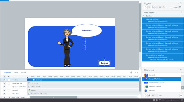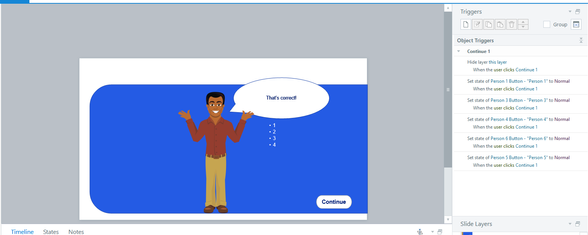 I need each button that has already been selected by the user to remain in a visited state for the remainder of the slide. I need a continue button to become active (in a normal state) after all the buttons have been visited.