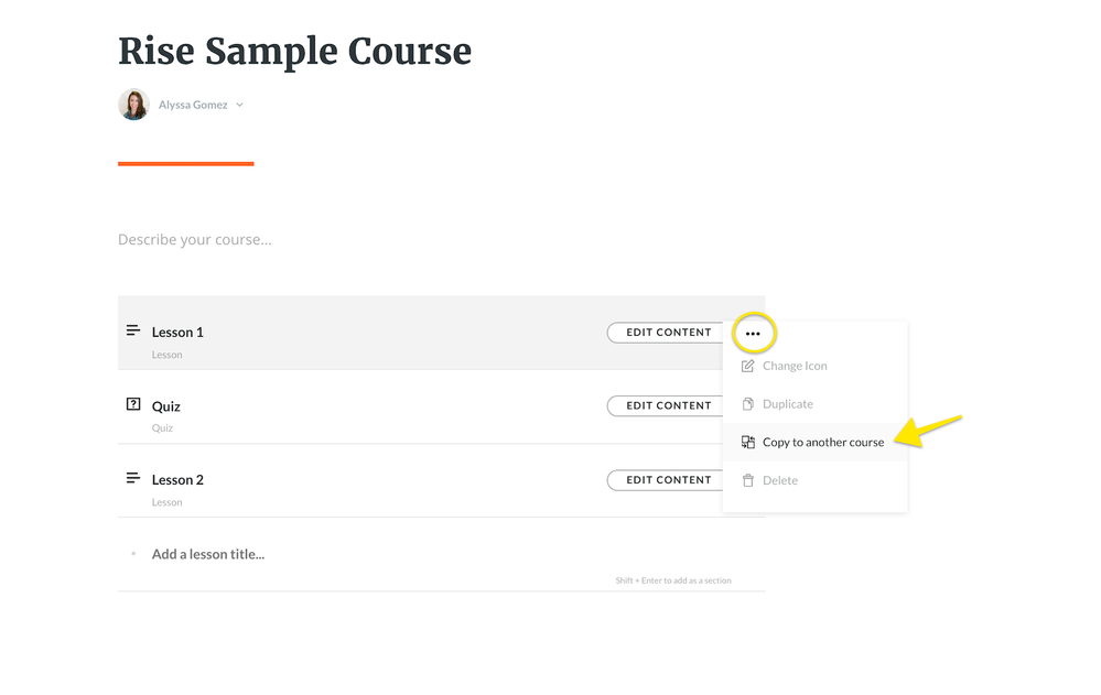 • Hi Deb! Do you want to copy a lesson from one course to another? If so, here's how!