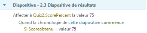 If Score obtenu (my number variable) = value 75