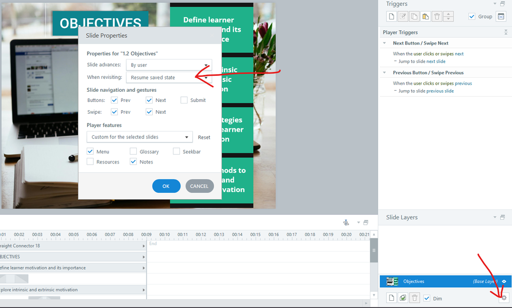 I am working on a project where the learner is supposed to visit all of the sections and they are supposed to be marked as visited when the learner visits the link to that page. I can't get the visited states to work. Do I have to use variables? The slide number in question is 1.3.