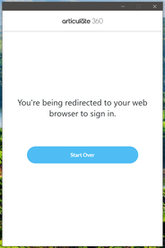 Let me add that when I first click on the Articulate icon I get this message. I do not get redirected and instead I click on Start Over and a browser opens up and returns the Axios error.