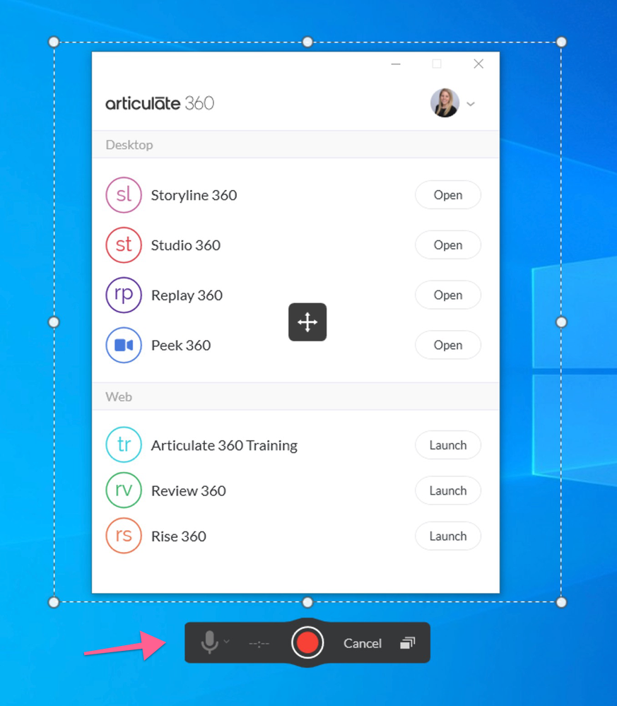 When you launch Peek 360 and choose your recording area, you should see the control panel appear like in the photo below.
