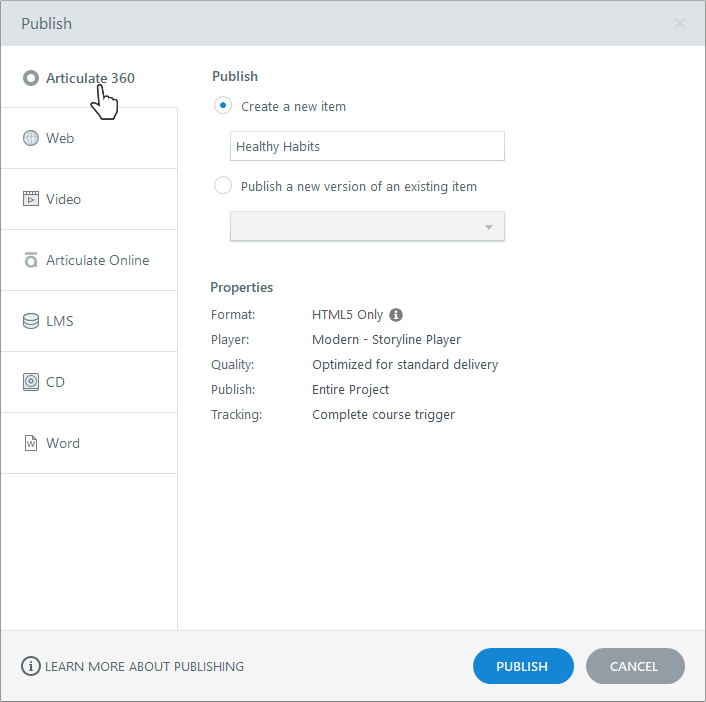 Is this the only course where it made a new item, and not a new version? Let us know if you see something odd like this again, and it'll help to take a look at your Articulate 360 account. We'd want to know the course title, time of publishing, and your Articulate ID, so you may want to share that info privately with our Support Team.