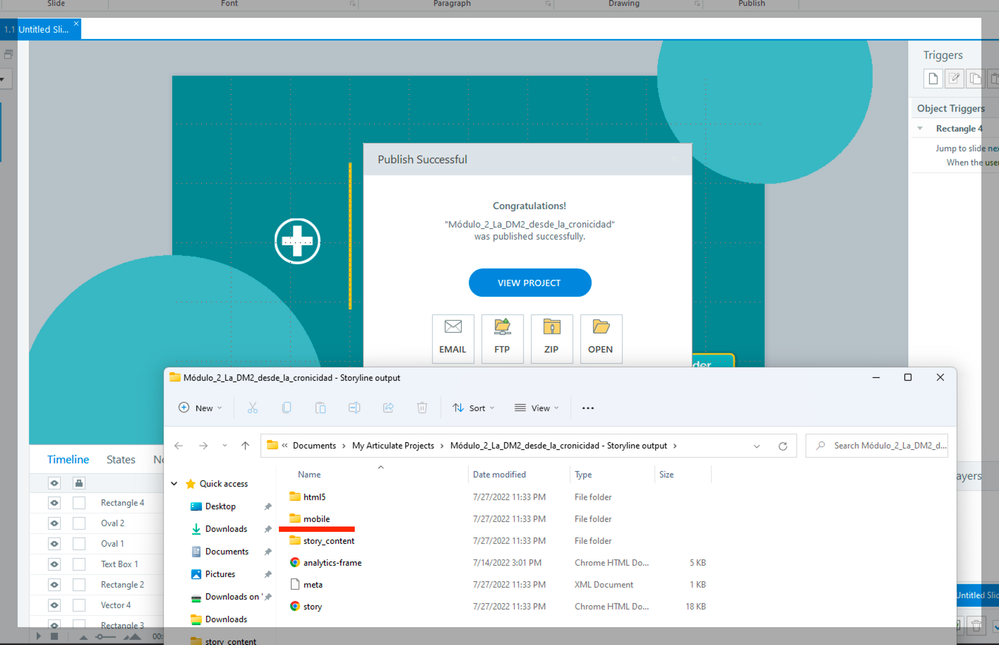 Hola a todos. Me pasa algo extraño. He realizado unos juegos con Story 360 y al publicarlos para LMS en algunos aparece la carpeta mobile y en otros no. Adjunto captura para explicarlo mejor. Están exactamente igual ambos proyectos pero uno de ellos no se ve en dispositivos móviles. Alguien puede ayudarme?