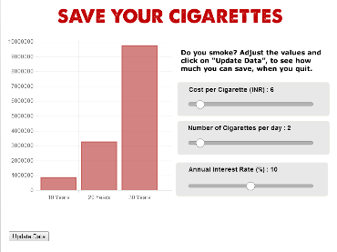 Used Sliders, charts (Not part of SL2, Its a Javascript file), and a Finance Concept to illustrate the benefit of quitting a stick.