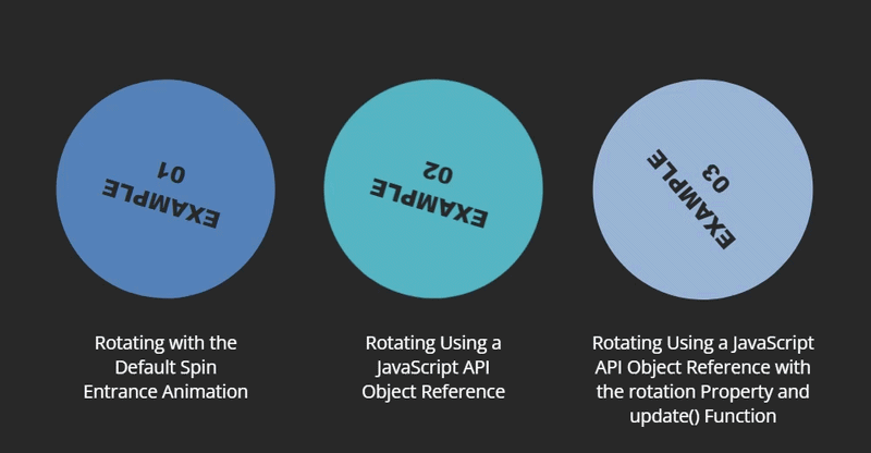 Object is rotating using a JavaScript API object reference and the Web Animations APIExample 3: