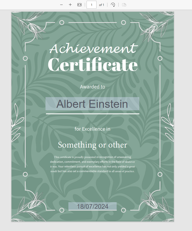 But obviously, THE CERTIFICATE COULD LOOK LIKE ANYTHING!! It's a pdf edited outside of the Storyline Block. The JavaScript would be exactly the same so long as the fieldnames in the pdf form remain the same.