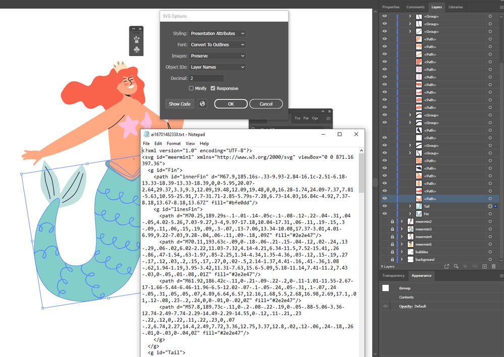 Then you can ungroup it and edit/animate the SVG as all path points stay available. In a next step i will show how to animate the path points of a SVG.