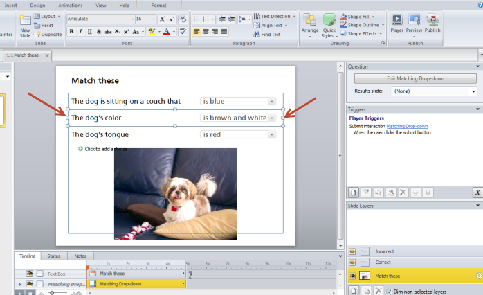 Change font size in matching drop-down quiz question