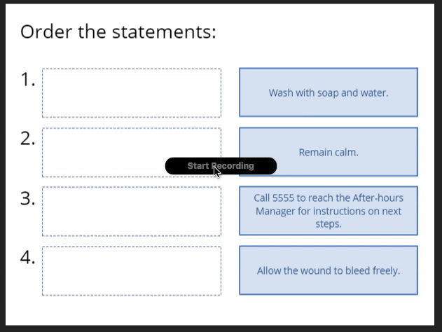 Here's an example of a sequence drag and drop question with the answer being larger than the question font.
