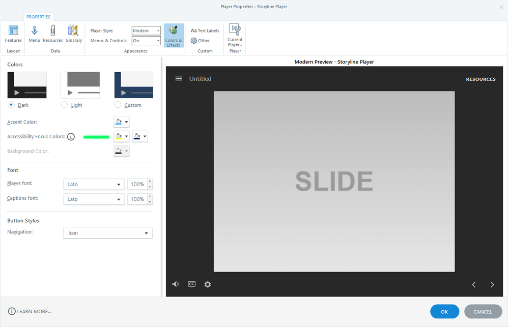 go to Player/Colors & Effects/Accessibility Focus Color