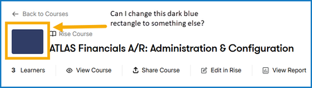 Thanks for reaching out! The dark blue rectangle you mentioned is your course Cover Photo in Reach 360. The cover photo in Reach 360 is not directly generated from Rise 360 cover photos. In Reach 360, you can add a cover photo by uploading your own image or selecting one from the Content Library.