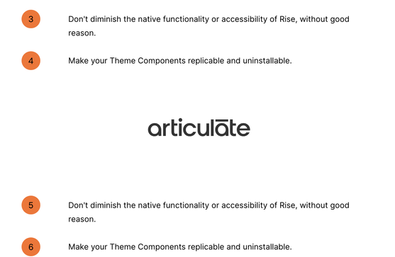 Hi, Lea. I'm including an example of this Rise limitation. When using a numbered list in a regular text block, we cannot continue numbering.