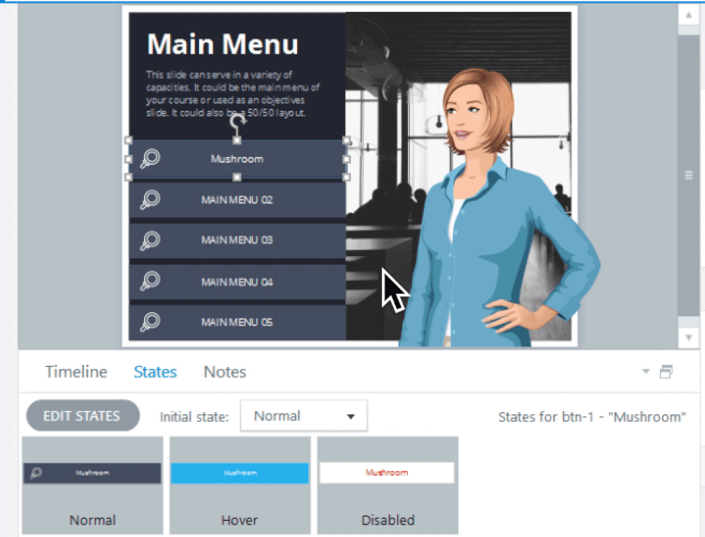As soon as you apply any changes to the text in a State, such as changing the Hover state text to just green, when you click on the text box on the slide outside of the Edit States option, and change the font size, only the text states that have not been changed will update to the new size.