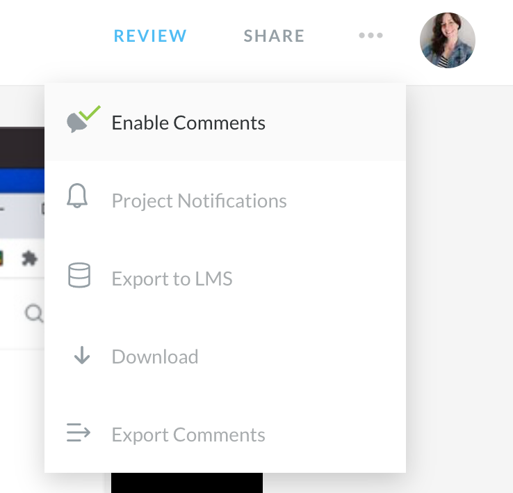 - Make sure the comments are enabled on the Review 360 item. The course owner can choose Enable Comments in the settings: