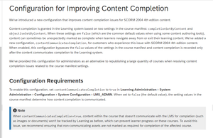 - The two existing parameters (completionSetByContent and objectiveSetByContent) are usually set to "false" automatically - so if you want them to be "true," you have to dig for them in the XML manifest file.