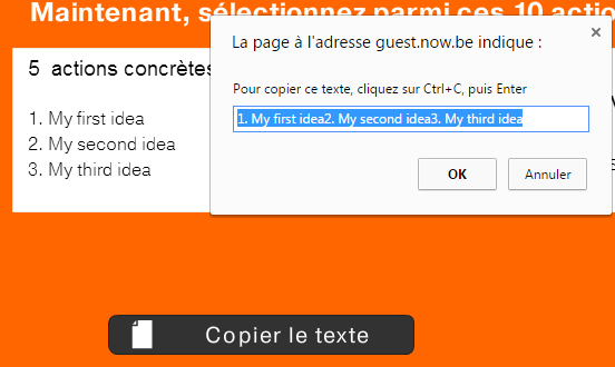 But the problem I get is that the text copied from the variable is pasted in the clipboard without any spaces or <br>... So it is not perfect for the user.