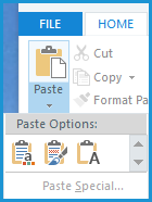 FYI: When you have text in the clipboard, the Paste button includes options for pasting: Use Destination Theme, Keep Source Formatting, or Keep Text Only.
