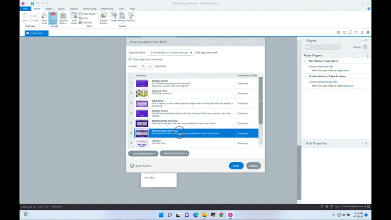 The review layer is grayed out during review because of the way you have the 'Review' layer setup for each individual question slide. If you take a closer look the 'Review' layer for your questions, you'll see that they all have a background fill that has some level of transparency. Here's a recording so you can see what I mean: