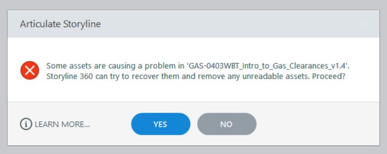 I have had this happen to me as well and Storyline used to tell me what was removed. Now I have no idea what has been removed without going through my entire project to try to find what was removed. Is there any way to find out what asset or assets were removed?