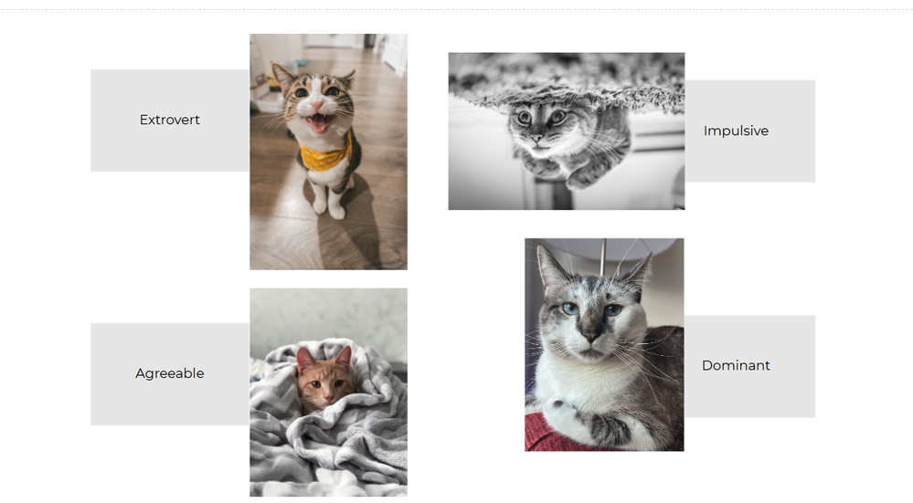 Thanks so much! I was randomly creating one on cats to try it out! Note- the dominant cat is actually my cat, the others are from the content library! 😆😂. This is built from a blank canvas.