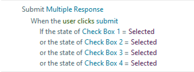 What is the correct set of conditions for using a custom Invalid Answer with a multiple responses quiz question (more than one answer is correct)? I have the "Submit" trigger follow the Show Invalid Answer" trigger and I am trying to show all possible conditions that should show the Incorrect Answer layer. When I test using one correctand one incorrect response check mark selected I do not get the "Incorrect' layer but the "Invalid Answer" layer. Help!!