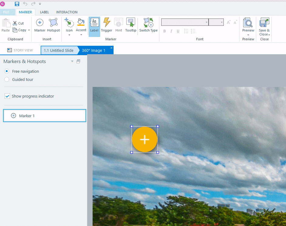 You have the option of Light Theme or Dark Theme for hotspot and marker labels. Just click the Interaction tab, then click the Theme drop-down arrow to select a light or dark theme: Formatting Labels