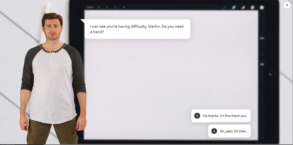 I'd love to have an unblurred feature as well and something else. I'd like the ability to remove the character in a discussion. and here's why. I'd like to replicate an online scenario between a website visitor and a bot..... so my "background" will be an ipad (not blurred) and the conversation will fit over the ipad, to look like it was on the ipad. Something like this... but without the character.....