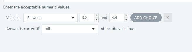 In the answer (preview or published) it will not accept any value with a point. It only allows integers as in 3 or 67 (is "integer" even the correct word here?)