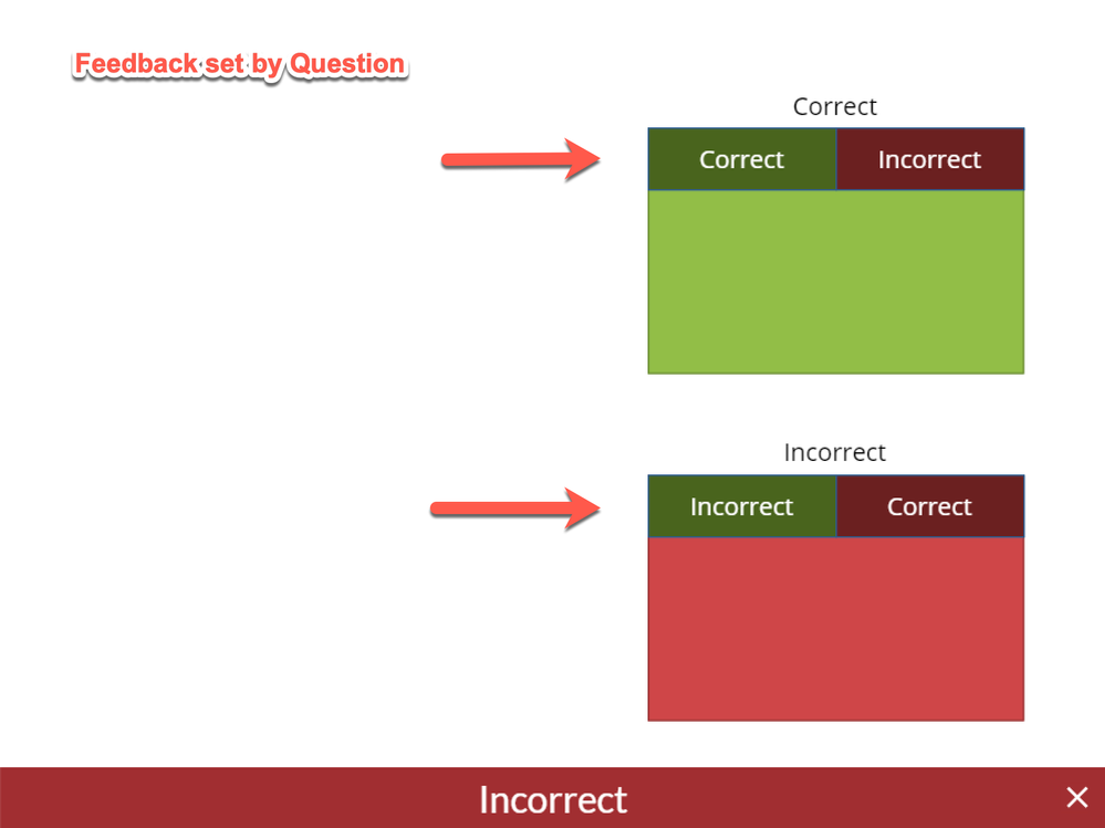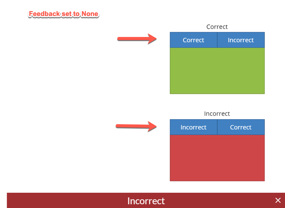 Feedback set by Question: The Correct/Incorrect drop states show when receiving feedback, as well as when the user clicks Review Quiz on results slide.