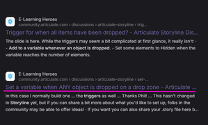 I usually go to Articulate community to find answers on complex question just like this : "storyline trigger when any object is dropped".