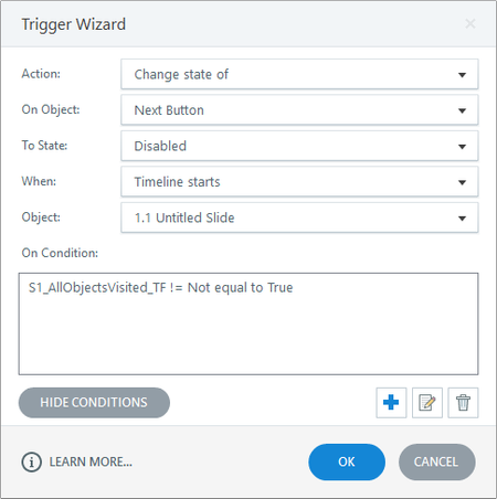However, once I link those 5 navigation buttons out to another scene/slide, and learner returns to the slide by clicking the "Previous" button, the states of my button no longer stays visited.