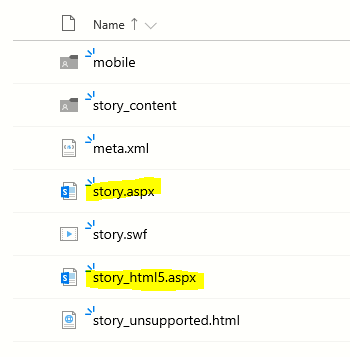 1. In the root folder, rename story_html5.html to story_html5.aspx (same way as you would have already changed story.html to story.aspx)