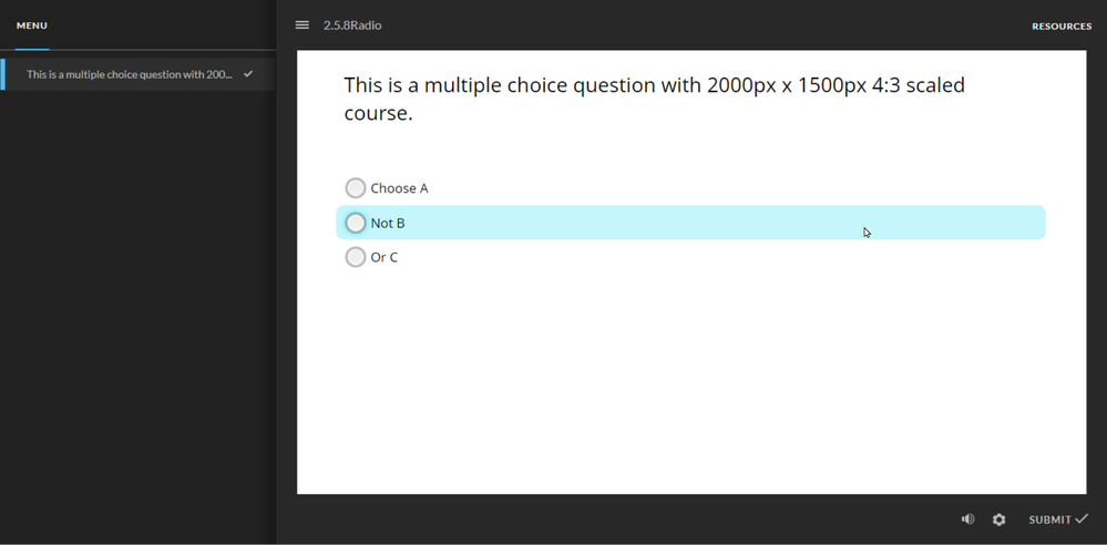 In the meantime, I wanted to reassure you that the target area for radio buttons is larger than the actual button, is controlled by the author, and by default stretches across most of the slide. I'm attaching an image for reference. The blue highlight indicates the target to choose the radio button.
