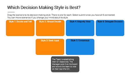 I've created a relatively simple drag-and-drop interaction for matching a "conversation" to one of six decision making styles.