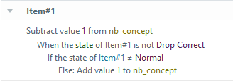 - I redid the triggers for each object so that the associated T/F variable is set to True and 1 is added to "nb_concept" when the item reaches the Drop Correct state.