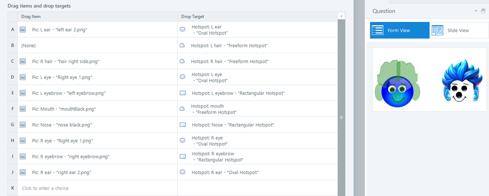 https://community.articulate.com/discussions/discuss/quiz-types/1249677) helping, but the very last object won't work. If you run preview try dragging the left section of hair and it won't connect??? I also discovered that the left eye and eyebrow are not working, but they underneath the Left Hair pic and that is fixed. Help please?