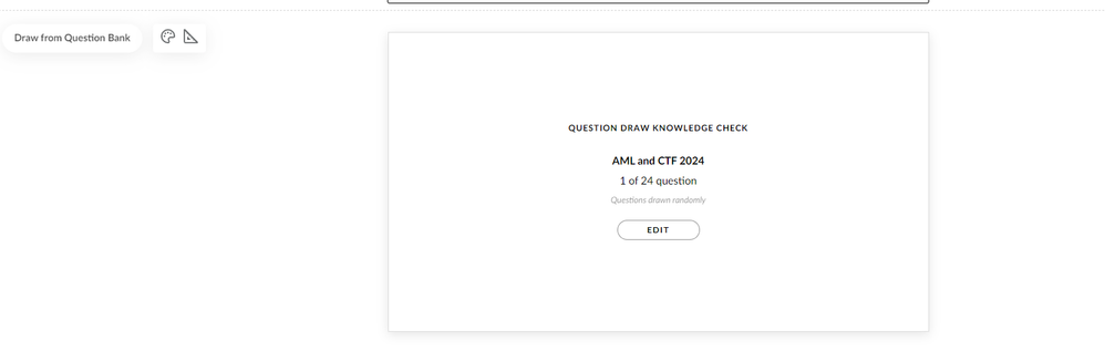 Hey Karl, I am working on a single Knowledge Check block in a Lesson. I've inserted the "Draw from Question Bank" block.