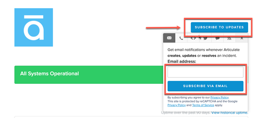 Instead of manually checking our status page, I suggest 'subscribing to updates'. That way, you'll receive e-mail notifications whenever Articulate creates, updates, or resolves an incident.