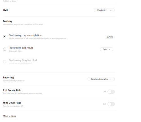 - Which publishing settings did you choose when publishing the SCORM package?