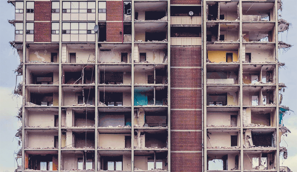 - in Photoshop, I placed image onto a transparent background layer and cut out some holes in certain windows of the foreground image.