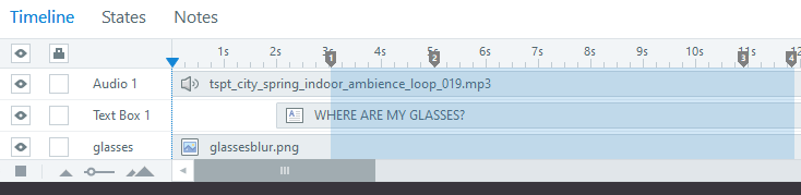 So, when the user clicks the glasses, the video continues to the end.  The other triggers just change the state of the text box.