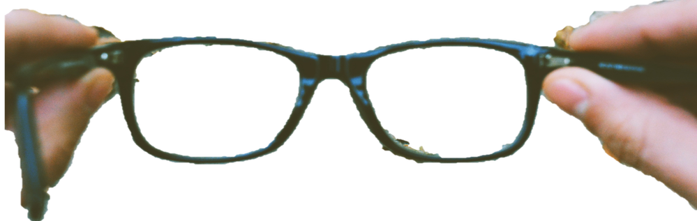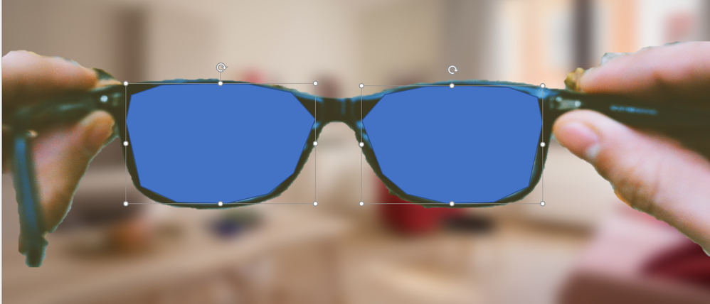 To create the clear vision effect, I cut out holes from the blurred image that matched the size of the lenses.