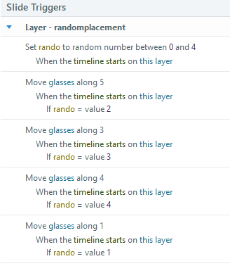 Finally, I didn't want the glasses to be the same place on the slide every time so, bring on the motion paths and the random numbers.