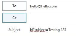 but it works fine if I add as a text hyperlink: mailto:hello@hello.com?subject=hi